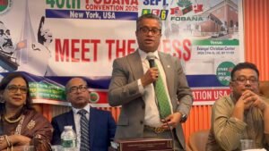 নিউজঃনিউইয়র্কে ৪০তম ফোবানা কনভেনশন উপলক্ষে সংবাদ সম্মেলন অনুষ্ঠিত হয়েছে । “চেতনায় ৭১, হৃদয়ে বাংলাদেশ” এই স্লোগানকে সামনে রেখে উত্তর আমেরিকায় প্রবাসী বাংলাদেশীদের গর্বের ফেডারেশন অব বাংলাদেশি এসোসিয়েশন্স ইন নর্থ আমেরিকা- ফোবানার ৪০তম কনভেনশন এবার অনুষ্ঠিত হবে নিউইর্য়কে। এ উপলক্ষে গত বুধবার,১ এপ্রিল ২০২৬,সন্ধ্যায় জ্যাকসন হাইটসের সানাই রেস্টুরেন্টের হলরুমে মিট দ্যা প্রেস অনুষ্ঠিত হয়েছে। আপন মহিমায় সমুজ্জ্বল শক্তিমান আবৃত্তিশিল্পী ও সংস্কৃতিস্বজন শারমিন সোনিয়া সিরাজের সাবলিল উপস্থাপনায় ৪০তম ফোবানার সাংবাদিক সম্মেলন অনুষ্ঠিত হয় ।এতে মঞ্চে আসন গ্রহল করেন ফোবানা সেন্ট্রাল কমিটি এবং ৪০তম কনভেনশনের আহ্বায়ক কমিটির নেতৃবৃন্দ মাঝে উপস্থিত ছিলেন ৪০তম ফোবানা সম্মেলনের চেয়ারম্যান জাকারিয়া চৌধুরী,এক্সিকিউটিভ সেক্রেটারি দেওয়ান মনিরুজ্জামান এবং হোষ্ট কমিটির কনভেনর নুরুল আমিন বাবু ও সদস্য সচিব মঞ্জুর কাদের ,উপদেষ্টা পরিষদের চেয়ারম্যান সিনিয়র সাংবাদিক হাকিকুল ইসলাম খোকন, উপদেষ্টা ও আপন মহিমায় সমুজ্জ্বল শক্তিমান অভিনেত্রী,আবৃত্তিশিল্পী ও সংস্কৃতিস্বজন লুৎফুন নাহার লতা,প্রধান সমন্বযরারী আব্দুল হামিদ,হোস্ট কমিটির কো-কনভেনর, সুব্রত তালুকদার. কো কনভেনার পিনাকী তালুকদার,সেমিনার কমিটির চেয়ারম্যান ও কবি ফকির ইলিয়াস,আপ্যায়ন কমিটির চেয়ারম্যান আলী খবির চান,মিডিয়া কমিটির প্রধান আসলাম খান ও শিবলু সাদেক শিবলী প্রমুখ।আগামি ৪, ৫ ও ৬ সেপ্টেম্বর ২০২৬, লেবার ডে উইকেন্ডে নিউইয়র্কের এস্টোরিয়ার ইভাঞ্জেল ক্রিস্টিয়ান সেন্টারে এবারের কনভেশন অনুষ্ঠিত হবে বলে জানানো হয়। কনভেনশনের আয়োজক সংগঠন এনআরবি এসোসিয়েশনের আয়োজনে মিট দ্যা প্রেস অনুষ্ঠানে স্বাগত বক্তব্য উপস্থাপন করেন কনভেনশনের হোস্ট কমিটির কনভেনর নুরুল আমিন বাবু। লিখিত বক্তব্য রাখেন হোস্ট কমিটির মেম্বার সেক্রেটারি মনজুর কাদের। শুভেচ্ছা বক্তব্য রাখেন এবং সাংবাদিকদের প্রশ্নের উত্তর ফোবানা সেন্ট্রাল কমিটির চেয়ারম্যান জাকারিয়া চৌধুরী, এক্সিকিউটিভ সেক্রেটারি দেওয়ান মনিরুজ্জামান, এডভাইজার অভিনেত্রী লুৎফুন নাহার লতা।স্বাগত বক্তব্যে নুরুল আমিন বাবু বলেন- বাঙালীর সবচে বড় অর্জন হচ্ছে স্বাধীনতা, মুক্তিযুদ্ধ। সেই মুক্তিযুদ্ধকে ধারণ করে সবাইকে একত্রিত করে আমরা যদি কিছু করতে পারি তাহলে আমাদের পরবর্তী প্রজন্ম বুঝবে, গর্ব করবে। আমরা সবাই মিলে এবারের ফোবানাকে সফল করতে চাই। আমি হিন্দু না মুসলিম সেটা জানতে চাইনা, আমি জাতে বাঙালী। আমার প্রচেষ্টা হবে যেনো আমার পরবর্তী প্রজন্ম যেনো আমাকে ভুলে না যায়।লিখিত বক্তব্যে মনজুর কাদের বলেন- এবারের কনভেশন আয়োজনের মূ